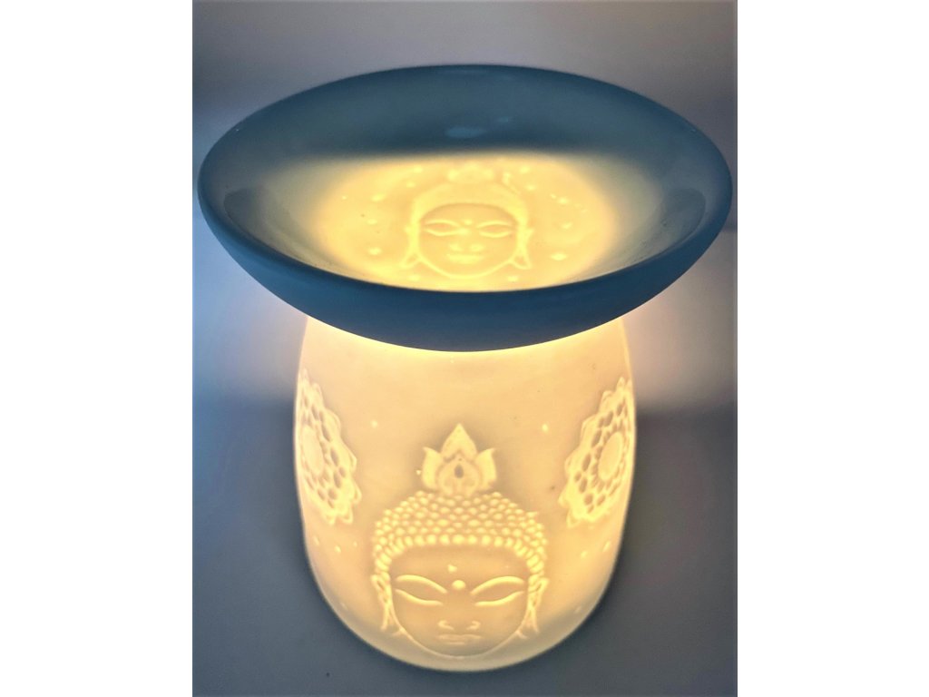 Mani Bhadra Aroma lampa Buddha (bílá keramika), 12,5 x 9,5 cm