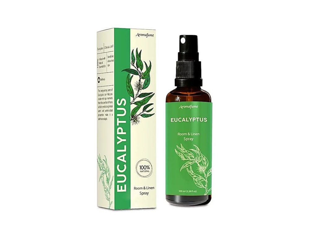 Aromafume Pokojový, textilní a polštářový sprej Eucalyptus (Eukalyptus), 100 ml - přírodní pokojový, textilní a polštářový sprej Aromafume s osvěžující bylinnou vůní eukalyptu jemně provoní prostor, ložní prádlo i polštáře a podpoří pocit čistoty, svěžesti a lehkého uvolnění.