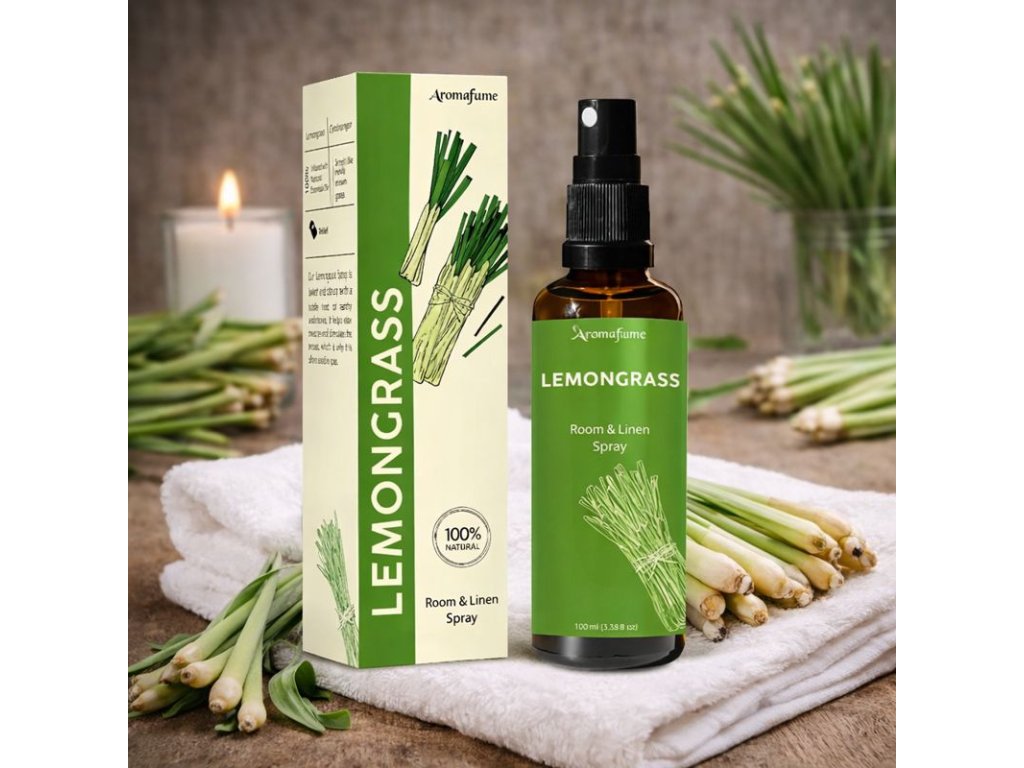 Aromafume Pokojový, textilní a polštářový sprej Lemongrass (Citronová tráva), 100 ml - přírodní pokojový, textilní a polštářový sprej Aromafume s čistou a svěží vůní citronové trávy jemně provoní prostor, ložní prádlo i polštáře a podpoří pocit lehkosti, uvolnění a vnitřní rovnováhy.