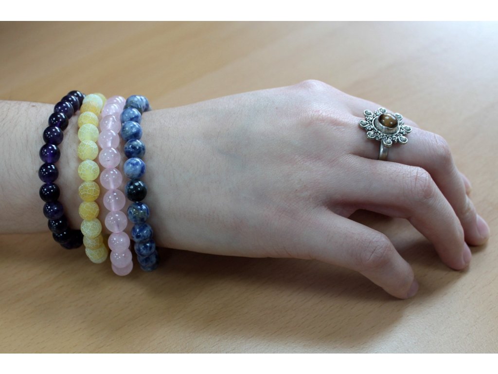 - Kombinace Kamenů: Můžete nosit náramky z jednoho druhu kamene nebo kombinovat různé kameny, aby se jejich energie doplňovaly. Například kombinace růženínu a ametystu může podpořit lásku a duchovní růst.