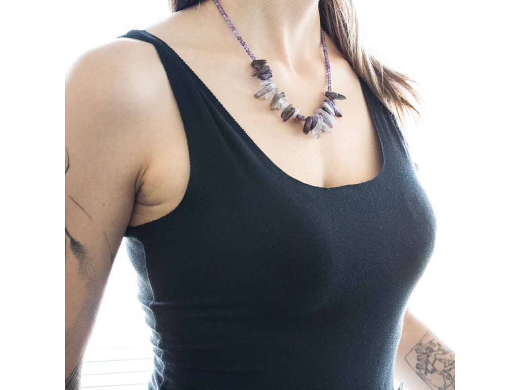 Nadčasová krása: Sytá, královská fialová barva a vynikající čirost drahokamů dělají z tohoto náhrdelníku nadčasový doplněk vhodný pro různé příležitosti.