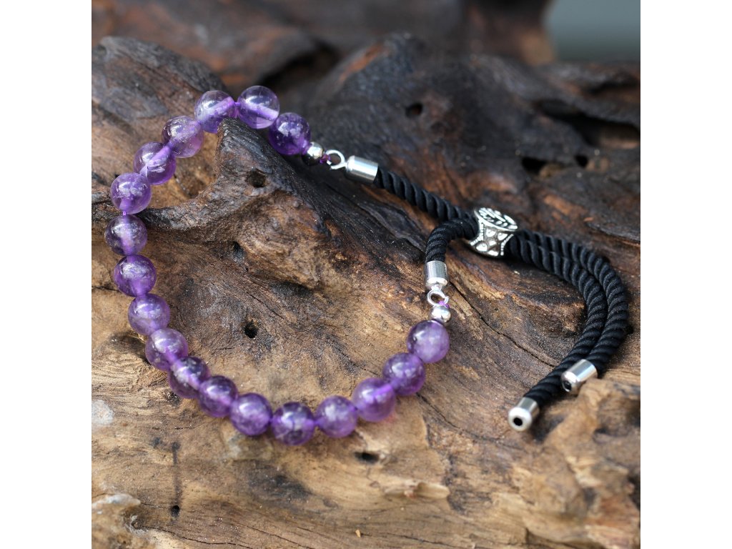 Nádherný náramek Silver Plated Gemstone Black String je zdobený podmanivými drahokamy Ametystu. Je to dokonalá směs elegance a duchovního významu. Tento náramek představuje okouzlující krásu ametystu, který je známý pro své ohromující fialové odstíny a uklidňující energii. Postříbřené akcenty dodávají nádech sofistikovanosti a vytvářejí skutečně okouzlující doplněk, který bez námahy kombinuje styl s vlastnostmi drahokamu.