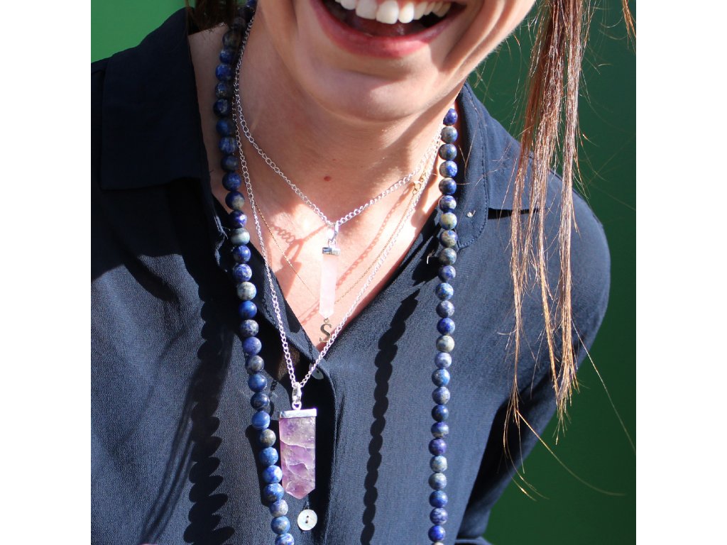Každý přívěsek je pečlivě vyroben a uklidňující fialové odstíny ametystu navozují pocit klidu a vnitřní moudrosti.
