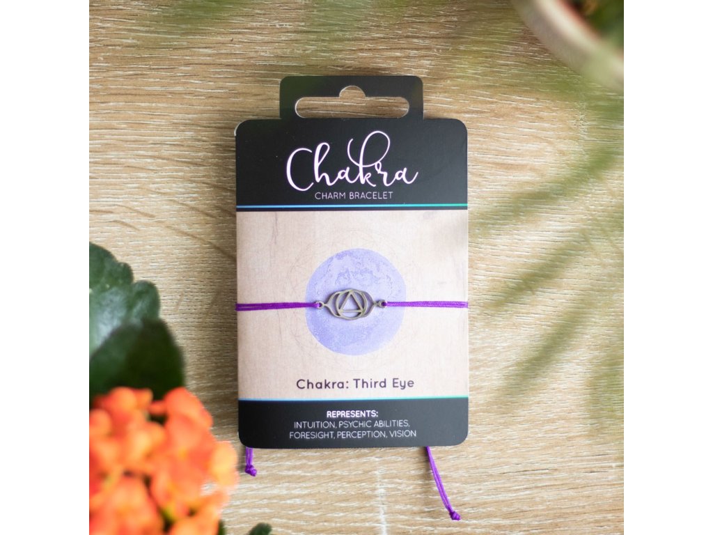 Jones Home and Gift Provázkový čakrový náramek se symbolem 6. čakry třetího oka (fialový)