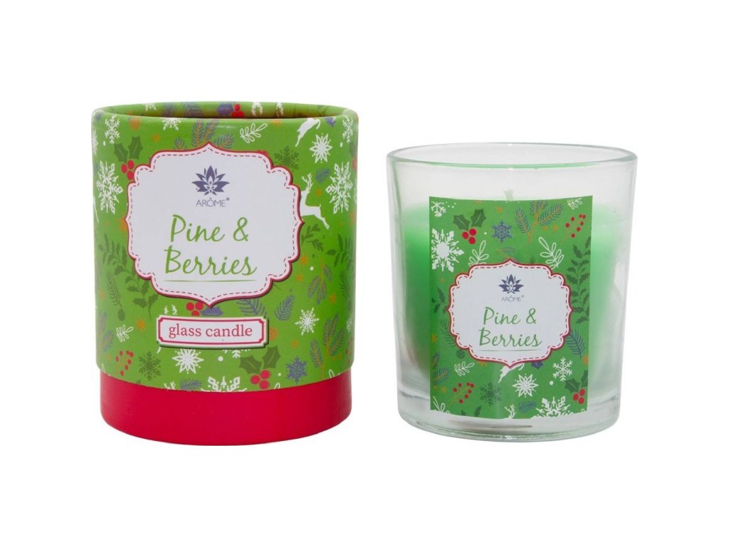 Vonná svíčka ve skle se svěží vůní borovice a bobulí