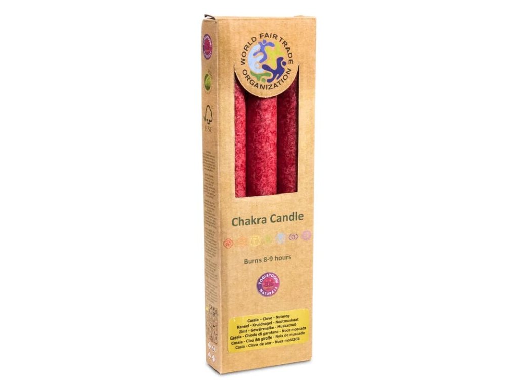 Tyto stolní čakrové svíčky z palmového vosku jsou ručně vyráběny v Indonésii, vosk je získán z udržitelných zdrojů. Použitím certifikovaného palmového vosku jsou tyto svíčky ekologickým výrobkem. Co možná nejvíce se výroba svíček provádí ručně. Koupí svíček zajistíme zaručenou práci pro co nejvíce lidí. Osmdesát procent zaměstnanců tvoří ženy. Společnost je certifikována WFTO.