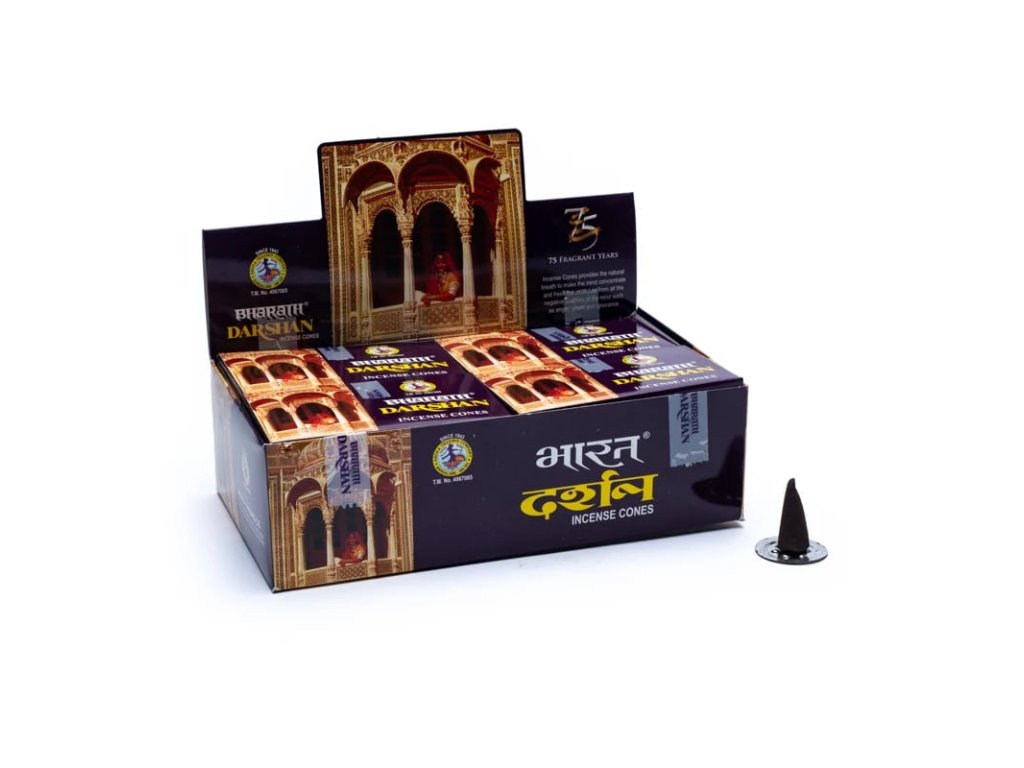 Vonné kužely Darshan Bharath, 20 ks. Vonné kužely Darshan Bharath provoní Váš domov, nebo i venkovní prostor jedinečnou mystickou vůní. Tyčinky obsahují jedinečnou směsí bylin, květin, medu, pryskyřic a olejů. Nabízí osvěžující a uklidňující vůně, které povznášejí vašeho ducha mimo říši vašich snů. Tato vůně Vás povznese a přinese Vám pohodu a relax.