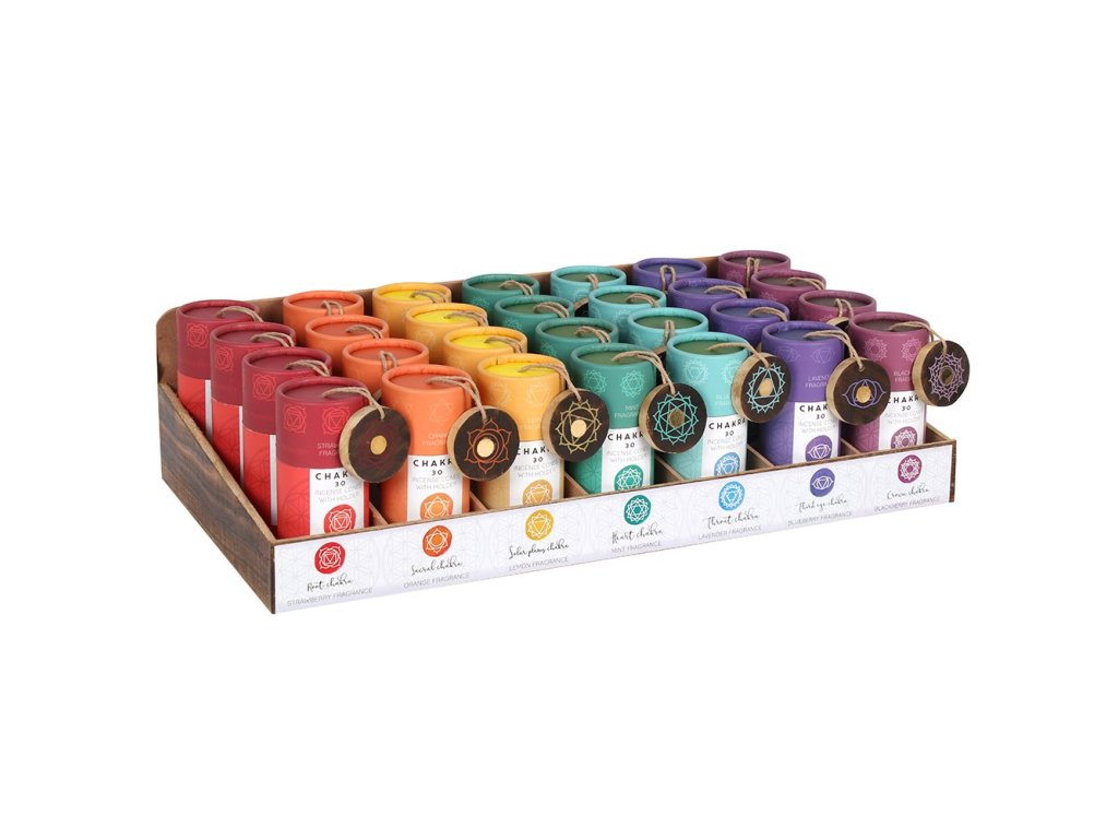 Čakrové vonné kužely, jsou vyrobeny podle původních, tradičních a starodávných ayurvédských receptů. Vyrábí se z přírodních látek, jako jsou dřevo, květiny, kořeny, pryskyřice, bylinky a oleje. Jsou 100% přírodní a jsou určeny pro harmonizaci Vašich čaker.