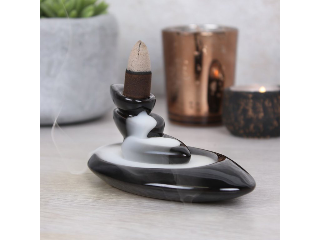 Stojan na vonné kužely Tekoucí kouř Malé kameny se vyrábí z kvalitní keramiky v Číně, a je určen pro vonné kužely řady Tekoucí kouř.