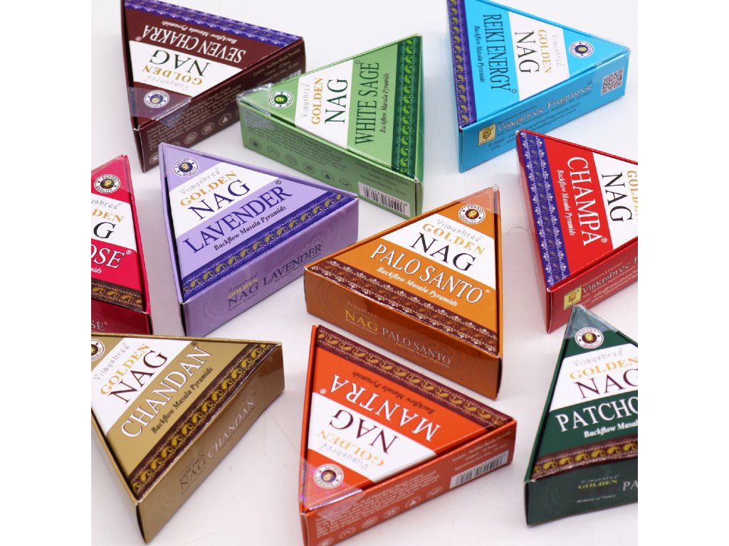 Vonné kužely Vijayshree Tekoucí dým Golden Nag Reiki Energy jsou určeny pro chvíle meditace a jógová cvičení, výborné jsou i pro relaxaci, zvýšení spirituality a vytvoření příjemné inspirativní nálady, která Vás zanese daleko za moře, až do zemí samotného Orientu.