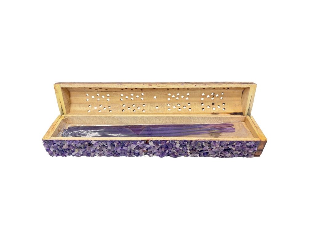 ARÔME Stojánek na vonné tyčinky a kužely – Dřevěná truhlička Elements Vzduch s Ametystem, 30 cm
