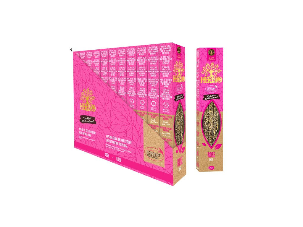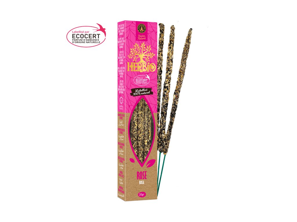 Vonné tyčinky FRAGANCES & SENS Herbio Rose (růže), 25 g. Jemná růžová vůně harmonizuje emoce, navozuje láskyplnou atmosféru a přináší hluboké uklidnění během relaxace či meditace.