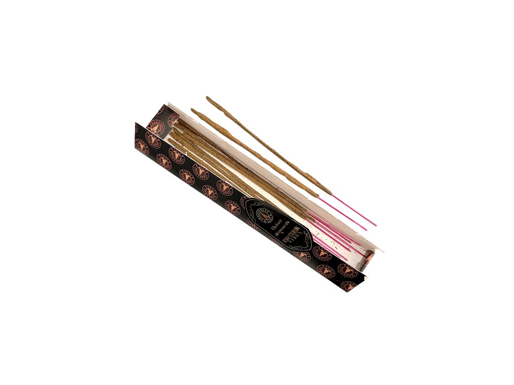 Vonné tyčinky Esoterik Vibes jsou vyráběny tradiční indickou technikou masala. Technika „Masala“ spočívá ve výrobě vonných tyčinek bez dřevěného uhlí za použití směsi ghí (přepuštěného másla), bylin, dřevěného prášku (Neem), rostlinných pryskyřic, medu a přírodních esenciálních látek a ručního kadidla nanášených na bambusové tyčinky. To je všechno know-how vysoce duchovních lidí. Jedinečná péče je věnována výběru ingrediencí a jejich čistotě.