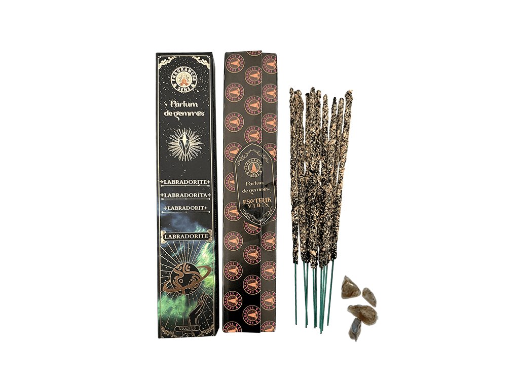 Labradorit, často označovaný jako „kámen magie“, je ve spiritualitě ceněn pro své schopnosti prohlubovat intuici, podporovat transformaci a otevírat dveře do vyšších rovin vědomí. Zapálením těchto vonných tyčinek vytvoříte mystickou a inspirující atmosféru, která Vás povede k hluboké meditaci a vnitřnímu poznání.