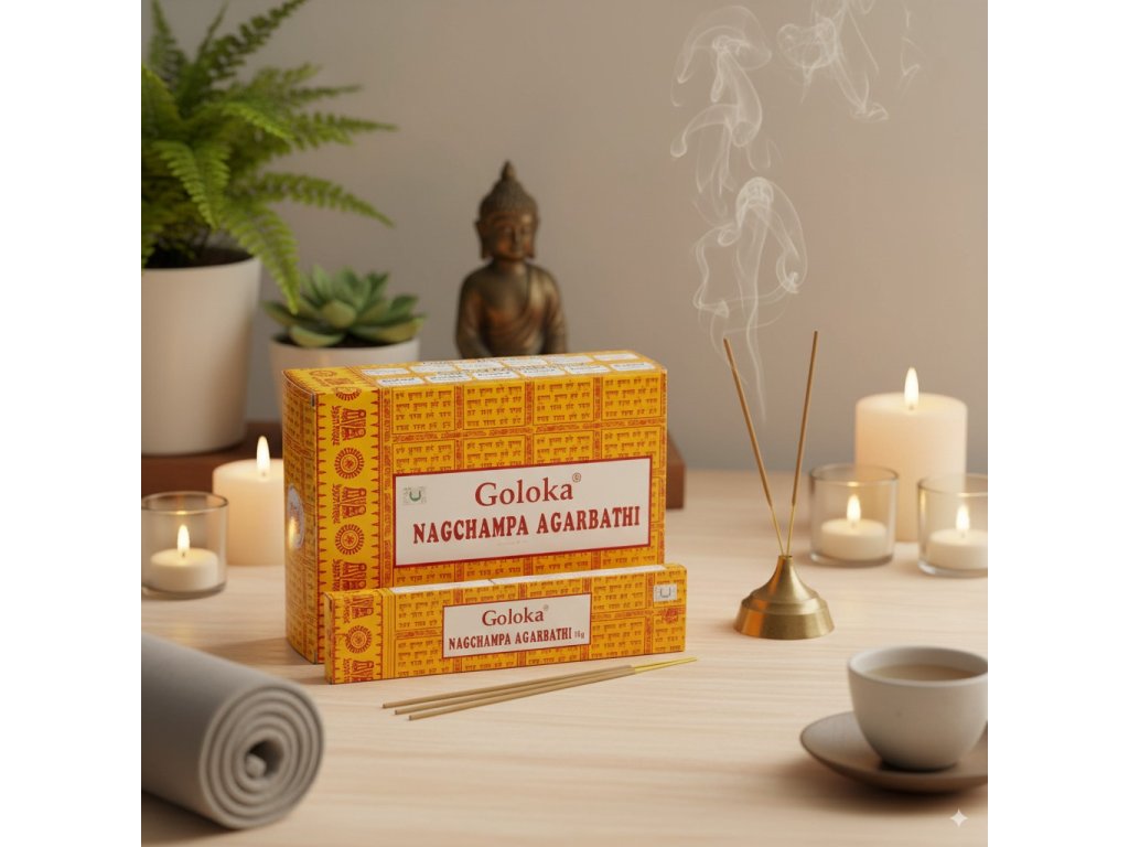 Význam názvu „Nagchampa“: jedinečná vonná směs založená na květu champaca, známém pro své uklidňující a očistné účinky