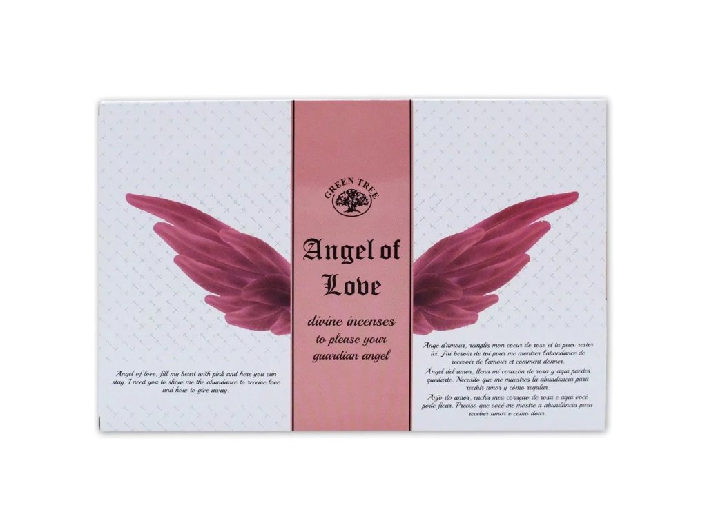 Vonné tyčinky Green Tree Angel of Love (Anděl lásky), 15 g. Vytvořte si skvělý relax a meditaci pomocí řady vonných tyčinek Green Tree Angel of Love Anděl lásky. Unikátní směs bylin, květů, medu, pryskyřice, čistého santalového dřeva, aromatických kořenů a přírodních esenciálních olejů. Směs přírodních ingrediencí se stala základem kořeněných, svěžích, květinových, dřevitých, pudrových, nebo sladkých vůní.