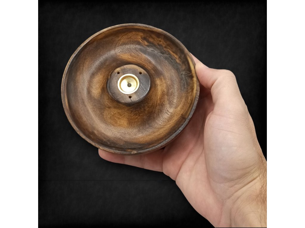 Tento stojánek pro pálení vonných tyčinek a kuželů, slouží jako podmanivý doplněk do každého prostoru. Vyznačuje se jednoduchým designem, který hladce zapadne do jakéhokoli stylu dekorace. Přírodní povrchová úprava dřeva zvyšuje jeho estetickou přitažlivost a dodává Vaší sbírce vonných produktů dotek autenticity.