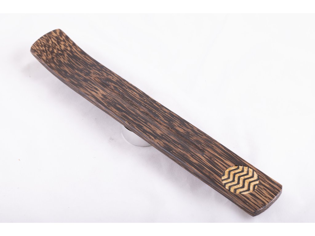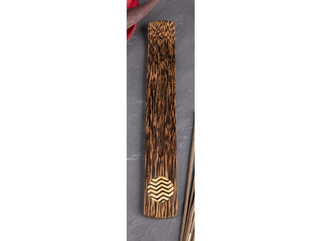 Stojánek na vonné tyčinky Vlny - dřevěný. Je široký a zakřivený, takže je perfektní pro zachycení pádu popela. Je snadné popel zlikvidovat a stojánek vyčistit.