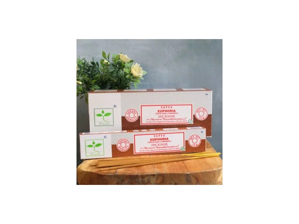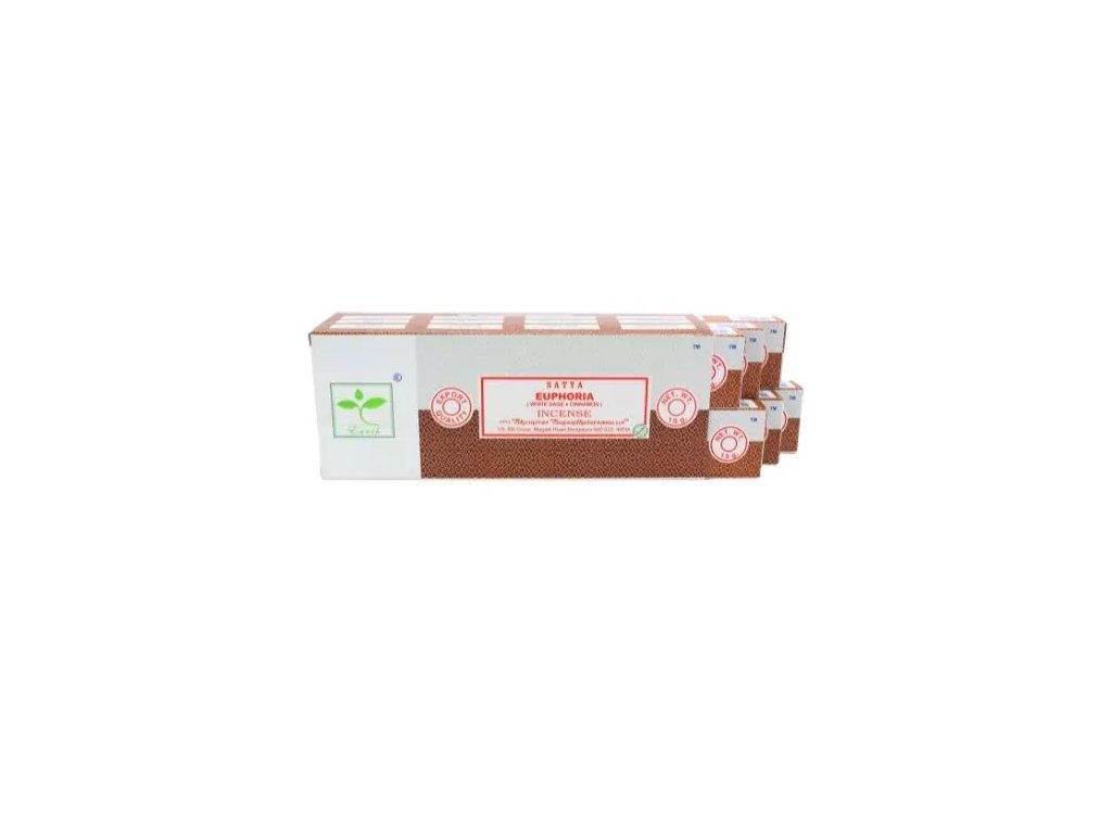 Shrinivas Satya Euphoria (Euforie) – vonné tyčinky s vůní bílé šalvěje a skořice pro harmonii, klid a teplo domova (15 g) – 1 balení