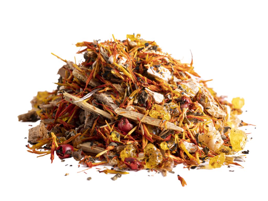 Složení směsi: Benzoin, dřevo potence, pomerančová kůra, santalové dřevo atd.
